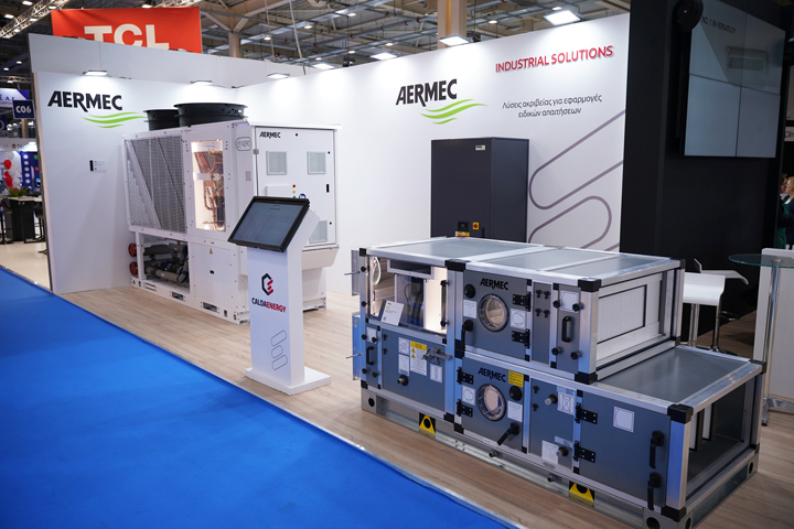 Παρουσιάστηκαν προηγμένα συστήματα για απαιτητικές εγκαταστάσεις, όπως η αερόψυκτη αντλία θερμότητας PRM με R290, μονάδες ελέγχου ακριβείας για data centers και η κεντρική κλιματιστική μονάδα επεξεργασίας αέρα ΑERMEC NCD η οποία συγκέντρωσε ιδιαίτερο ενδιαφέρον.